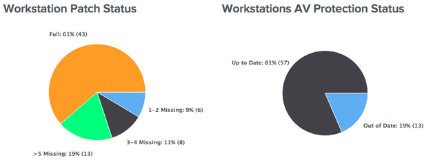 Workstation Patch & Workstation Security (AV) - Keeping your client’s end points properly patched and antivirus updated is a difficult challenge. Unlike Servers that tend to stay put and always on, workstations can be on the road and not connect to the network for days at a time - and when they are connected, they may be powered off during the patch window. Tracking the progress of your client’s patch and antivirus is very important to ensure their network is safe.