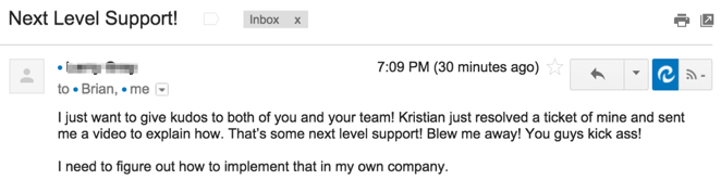 Like the example above, if you’ve had the pleasure of receiving a customized support video clip from Kristian or anyone else on our team, then there’s a huge chance that you were incredibly excited about it, probably sent us a love note, and also wanted to know more about how you could implement the same idea on your team:
