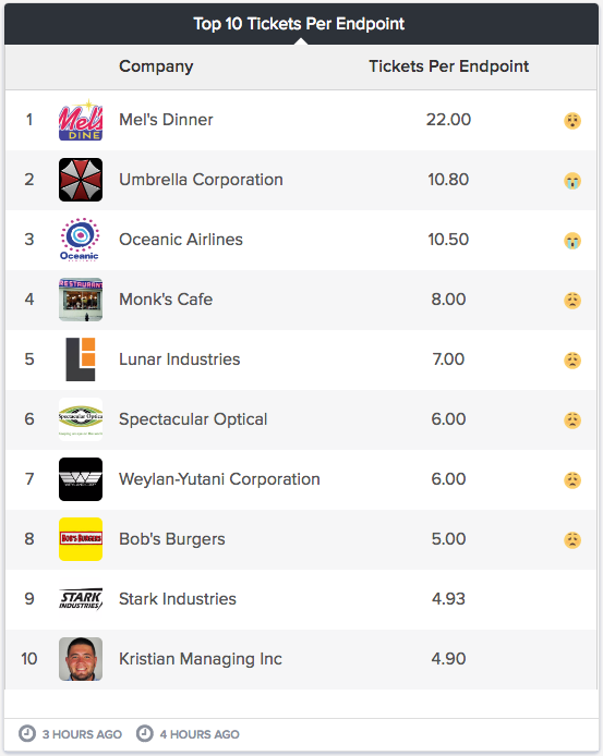 In addition to monitoring top 10 tickets per endpoint, you should take a look at your lowest 10 tickets per endpoint. Generally these will be your smaller clients who submit few tickets because they have fewer end users, but you may be surprised to find a few customers who have a large number of users but are in your lowest 10 tickets per endpoint. Spot the customers that are outside of your norm in both good and bad ways. This might be a sign that your team needs to spend more time with them as they might not be calling you for issues if they are off the normal “range” for your sweet spot.